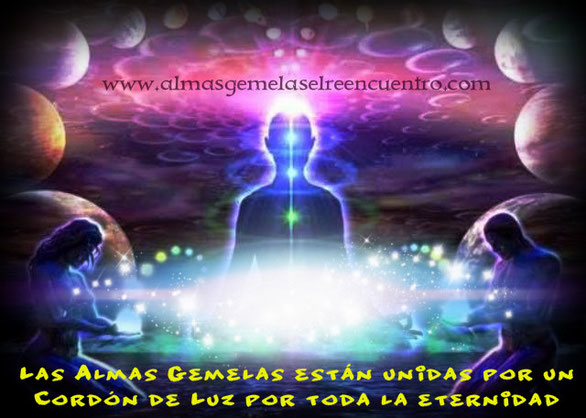 Las almas gemelas están unidas entre sí a través de un cordón de luz que sale desde el centro del corazón (cuarto chacra) de cada alma gemela.