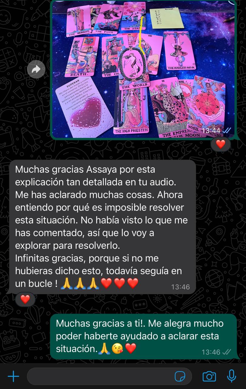 * Ya sea en el AMOR, el TRABAJO, la ESPIRITUALIDAD, o cualquier otro aspecto de tu vida, el Tarot te ofrece la CLARIDAD y el EMPODERAMIENTO que necesitas para avanzar.