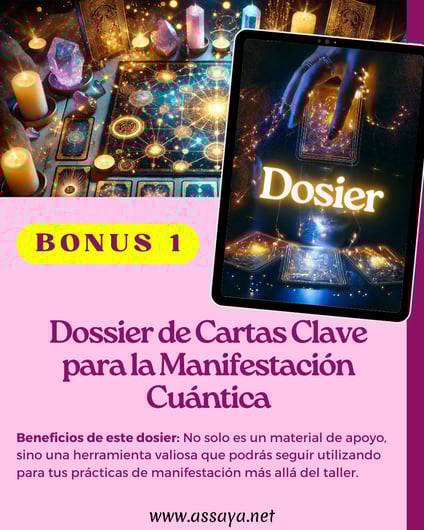 A lo largo del taller, descubrirás cómo el Tarot Cuántico puede activar energías específicas en tu hogar o negocio para atraer el AMOR, la PROSPERIDAD y la ARMONÍA. Para apoyarte en este proceso, recibirás un DOSIER EXCLUSIVO que te guiará paso a paso en la utilización de las cartas clave del tarot como portales energéticos.